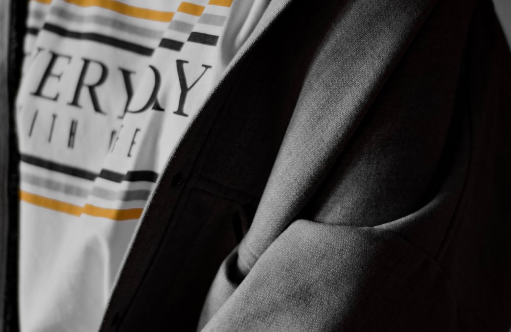 A sophisticated wool blazer in a timeless navy blue color. This tailored jacket features a notched lapel.